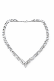 This breathtaking V-shaped necklace is crafted with 391 lab-grown round diamonds, meticulously set to create a dramatic cascade of brilliance. With an impressive total carat weight of 18.13 carats, each diamond is carefully selected for its exceptional E color grade and VS1 clarity, delivering icy-white radiance and remarkable sparkle from every angle. The design tapers gracefully into a striking center drop, giving the piece both elegance and bold presence.