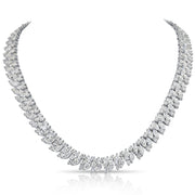 This breathtaking diamond necklace is a masterful blend of nature-inspired design and exceptional craftsmanship. Crafted in luminous 14K white gold, the necklace features an elegant garland of marquise-cut diamond motifs arranged in a graceful, leaf-like pattern that encircles the neckline with fluid brilliance. A subtle central drop accent adds balance and sophistication, creating a timeless yet striking silhouette.