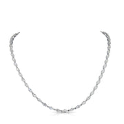 This refined lab-grown diamond necklace embodies timeless elegance and modern sophistication. Featuring a classic design with beautifully matched diamonds arranged along the neckline, the necklace offers a balanced blend of brilliance and understated luxury. The elongated diamond shapes are delicately spaced to maximize sparkle while maintaining a graceful, fluid look.